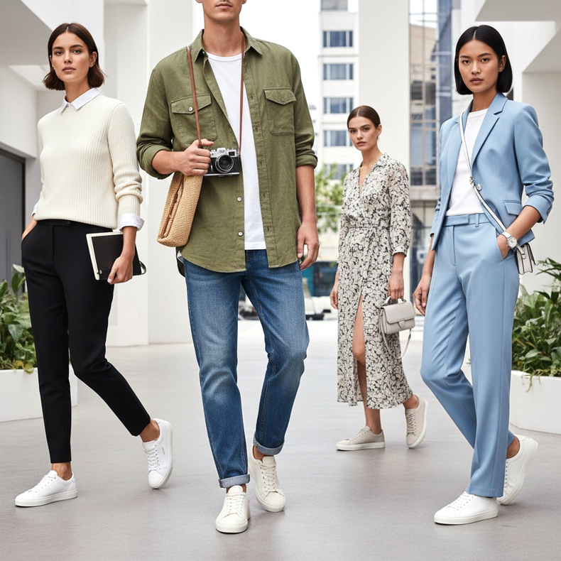 Adidașii subțiri albi sau crem arată deosebit de impresionant cu un costum de primăvară - pentru femei sau bărbați. Aceasta este una dintre tendințele cheie ale streetstyle-ului din 2026: formalitatea combinată cu casualitatea sportivă. Alege acest look dacă vrei să arăți elegant și modern.
