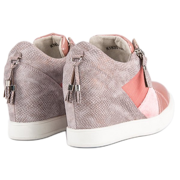 Adidașii cu pană la modă de la marca Kylie sunt alegerea perfectă pentru femeile care doresc să îmbine confortul cu stilul elegant. Confectionati din piele ecologica, acesti adidasi roz atrag atentia prin aspectul lor minimalist dar modern. Modelul inalt ofera un suport excelent piciorului, iar varful rotund il face extrem de confortabil de purtat.