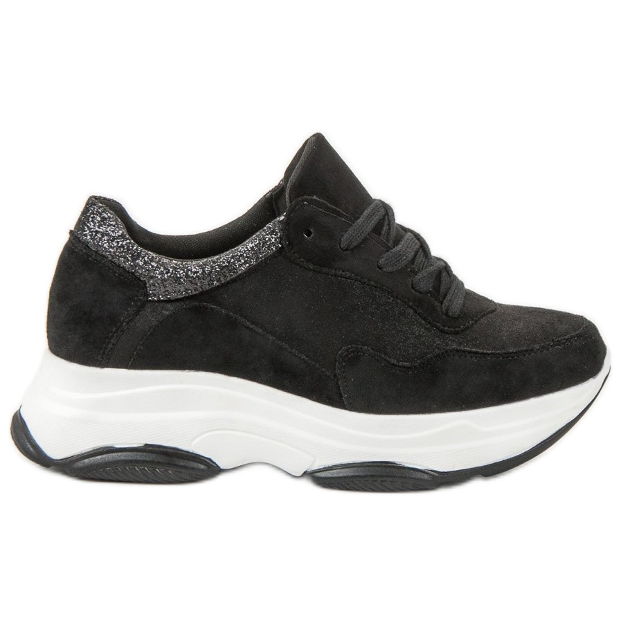 Descoperiți stilul și confortul cu pantofii sport ușori SDS pentru damă, într-o culoare clasică neagră. Confectionati din piele intoarsa ecologica, acesti adidasi combina designul modern cu grija pentru mediu. Se disting printr-o talpă albă, înaltă, care nu numai că le adaugă caracter, ci oferă și o izolare excelentă față de sol, ceea ce le face o alegere ideală pentru plimbările de zi cu zi.