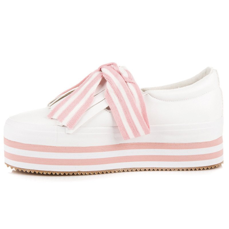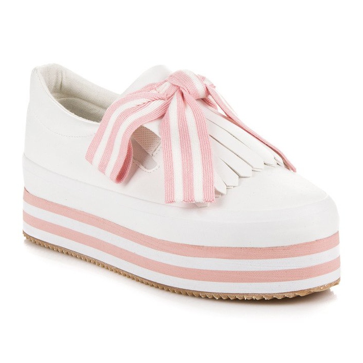 Va prezentam adidasi la moda VICES intr-o culoare unica alb si roz, care imbina perfect stilul sport cu eleganta. Acești pantofi originali cu o platformă înaltă (5 cm) nu numai că adaugă centimetri, dar și lungesc fantastic picioarele, ceea ce face ca fiecare femeie să se simtă fenomenală în ei.