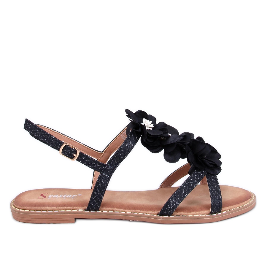 Detalii: Amaur Sandale negre cu flori delicate negru