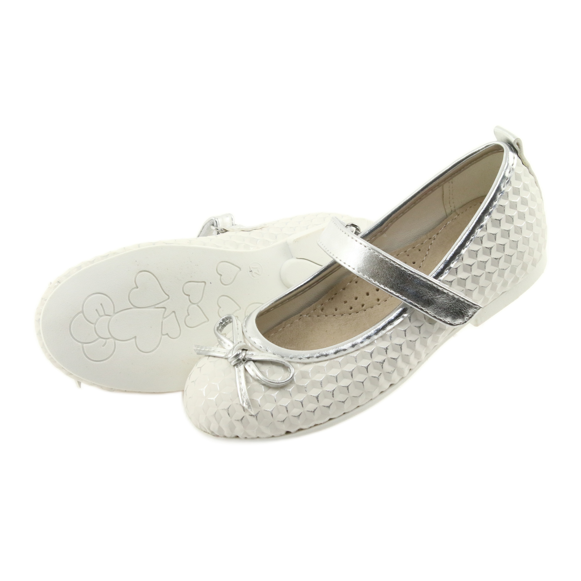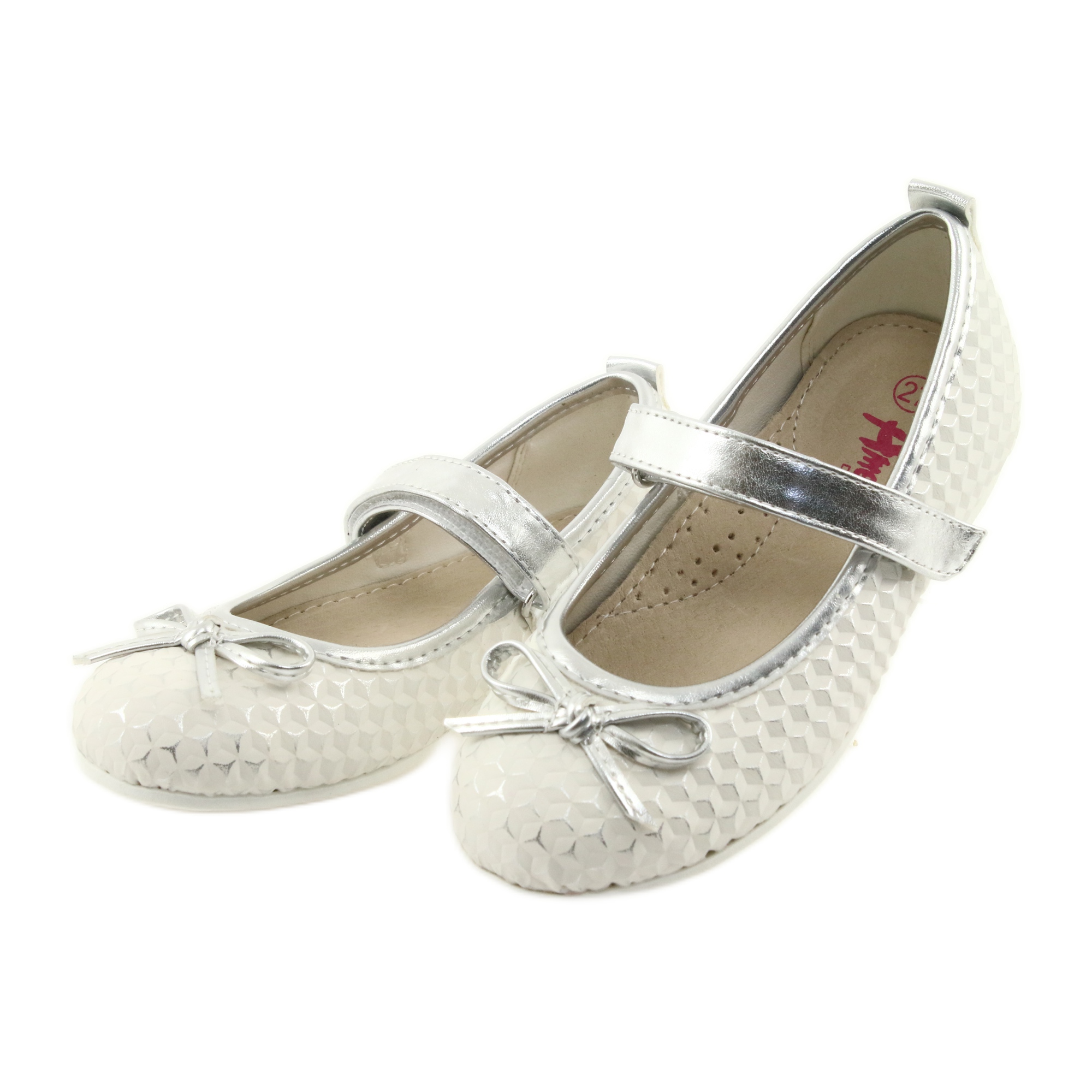Balerinii American Club GC16 cu velcro sunt alegerea perfectă pentru o fetiță care prețuiește confortul și eleganța la fiecare pas. Acești pantofi sunt confecționați din piele ecologică de înaltă calitate într-o nuanță elegantă de alb și argintiu, ceea ce îi face potriviti pentru diverse stiluri - atât de zi cu zi, cât și mai elegante.