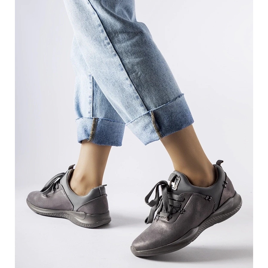 Descoperiți noua dimensiune a confortului și a stilului datorită ANATLES GRAY SDAKERS de la marca D/GMR! Aceste pantofi sport eleganți au fost concepute pentru femeile care apreciază atât aspectul la modă, cât și confortul.