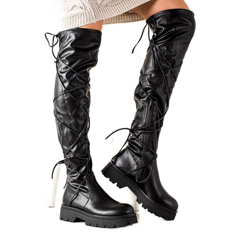 Cizmele la modă Seastar Look cu cravate în negru sunt alegerea perfectă pentru femeile care doresc să îmbine eleganța cu confortul de zi cu zi. Aceste cizme lungi, deasupra genunchiului, au fost concepute pentru sezonul de toamnă/iarnă, oferind un aspect elegant și căldură în zilele reci.