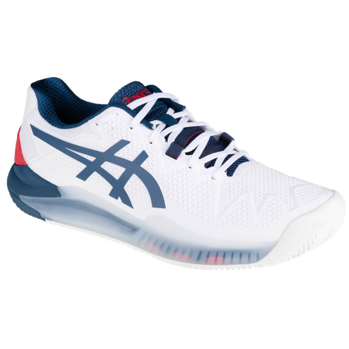 Modelul Asics Gel-Resolution 8 Clay se remarca si printr-un varf ranforsat, care sustine siguranta si stabilitatea piciorului in timpul antrenamentelor intense sau meciurilor. Închiderea cu șireturi permite pantofilor să se potrivească perfect piciorului, ceea ce se traduce printr-un control și confort mai bun în timpul alergării.