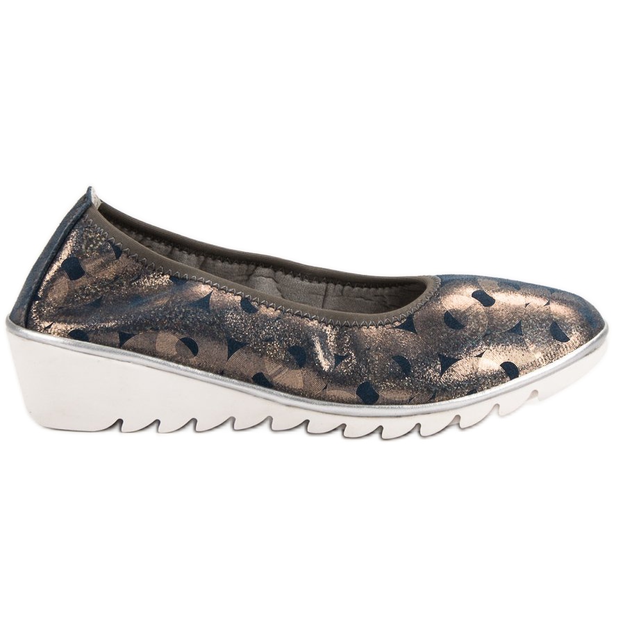 Acești balerini au o închidere cu închidere, ceea ce îi face ușor de pus și scos. Datorită tocului moale încorporat, fiecare pas în acești pantofi este o plăcere pură. Înălțimea penei este de 4 cm, ceea ce asigură confortul la purtare în timp ce alungește optic picioarele.