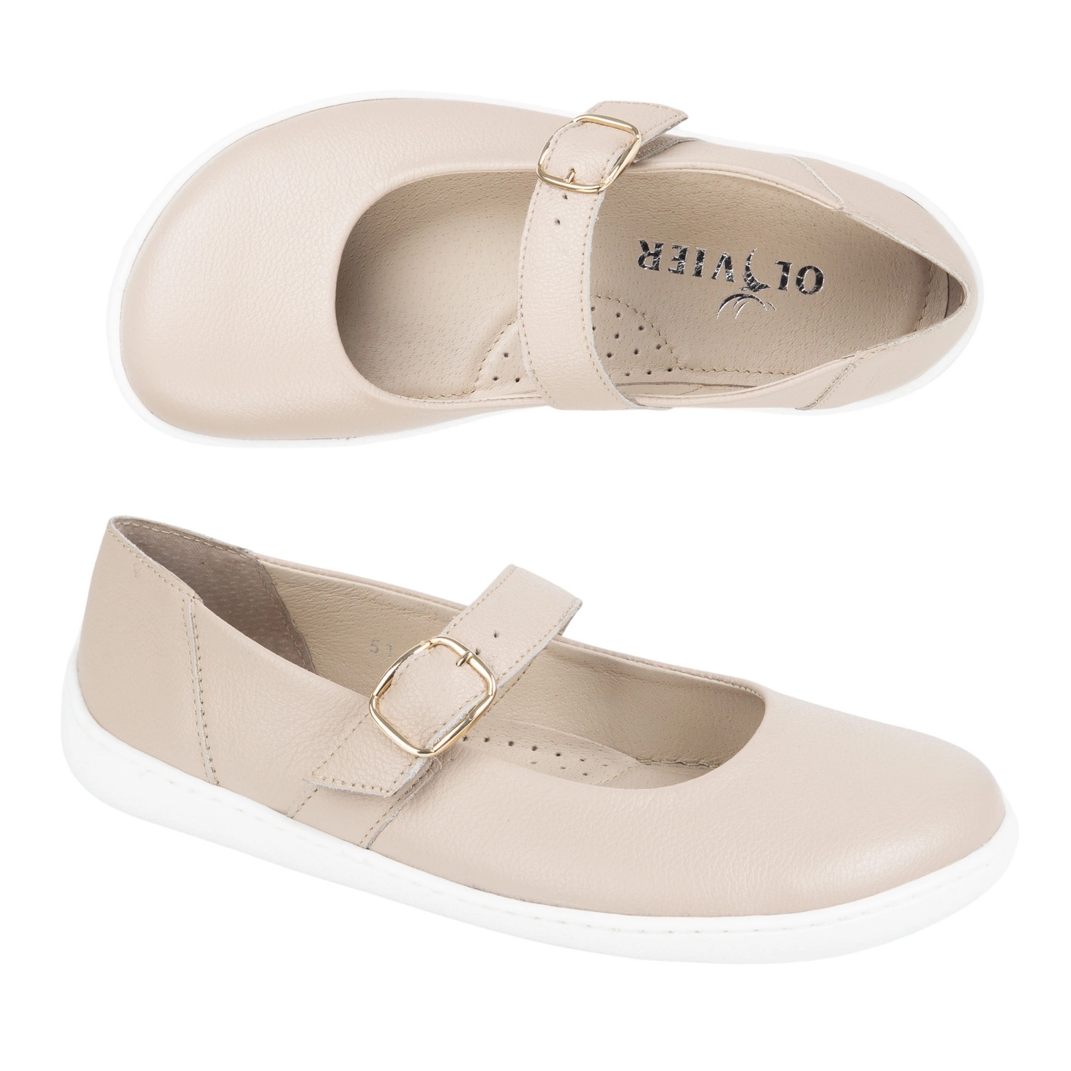 Detalii: Balerinas pentru femei desculță Olivier 1770POL Pantofi din piele cu cataramă bej