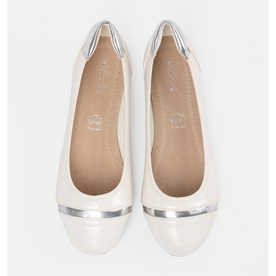 Amestecul de alunecare face ca punerea și îndepărtarea balerinelor rapide și convenabile - este o soluție ideală pentru femeile active. Balerinele albe cu decorare de argint vor completa perfect atât stilizări zilnice, cât și elegante, ceea ce le face un plus universal pentru garderoba ta.