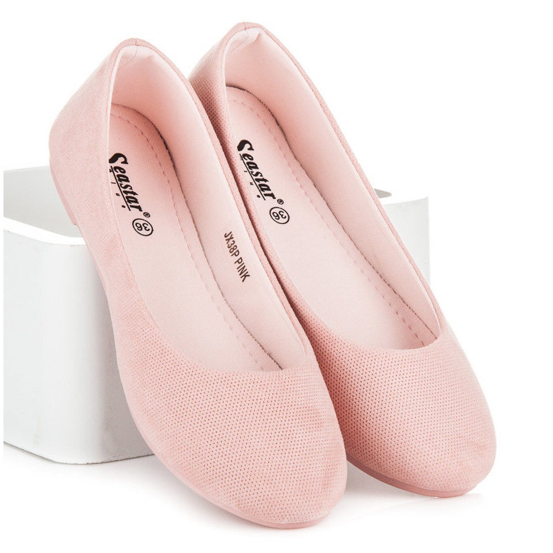 Descoperă eleganța și confortul cu balerinii roz Seastar, care cu siguranță vor deveni elementul tău preferat din garderoba ta. Acesti pantofi unici, confectionati din piele intoarsa ecologica de inalta calitate, imbina designul minimalist cu stilul atemporal. Culoarea roz deschis le oferă prospețime și le face un plus perfect pentru stilul de zi cu zi.