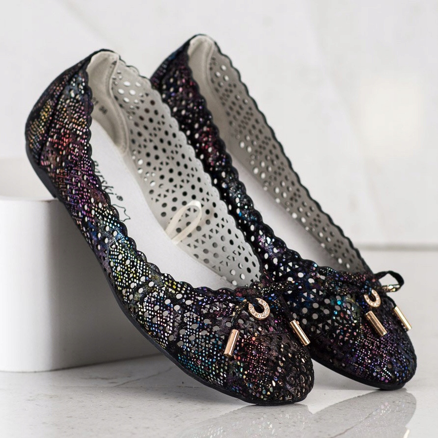 Balerinii eleganti ajurati multicolori de la S. BARSKA sunt o propunere ideala pentru femeile care cauta confort si eleganta pentru zilele de primavara si vara. Acești balerini moderni se disting prin designul lor unic - partea superioară este acoperită cu un model ajurat în nuanțe de negru care strălucește în soare, creând un efect spectaculos, colorat.