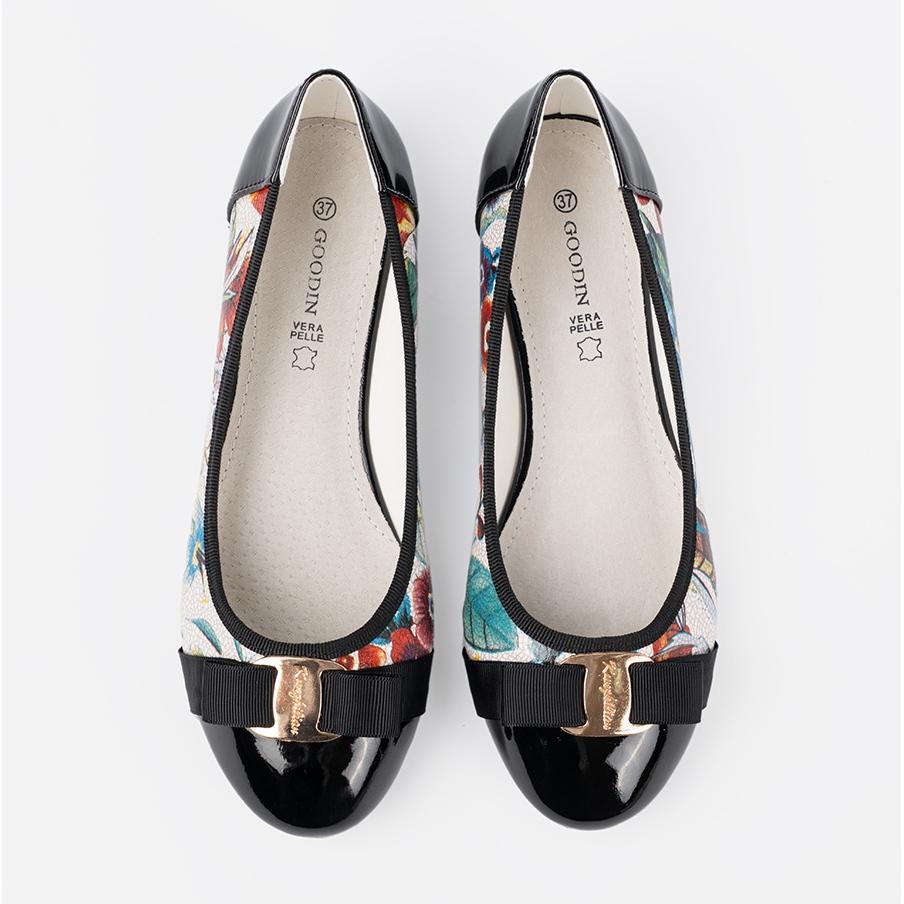 Faceți cunoștință cu balerinele Goodin într -o combinație unică albă și albă cu un model floral fermecător. Aceste pompe elegante sunt o propunere excelentă pentru femeile care doresc să combine un aspect la modă, cu un confort de purtare inegalabil. Datorită lipsei de călcâie, aceste balerine sunt alegerea perfectă pentru producțiile zilnice, asigurând o libertate deplină de mișcare.