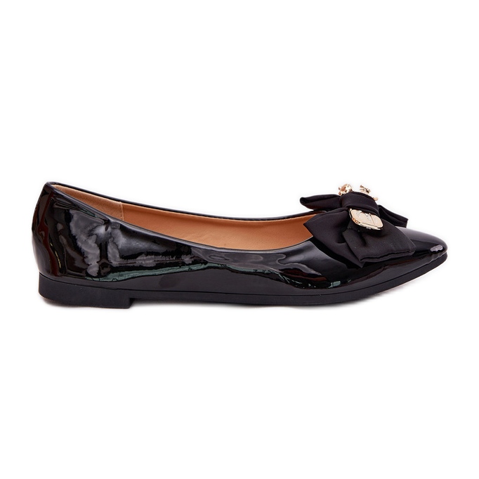 Detalii: Balerine pictate cu un arc și o broșă aurii negre negru