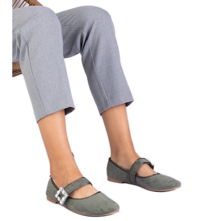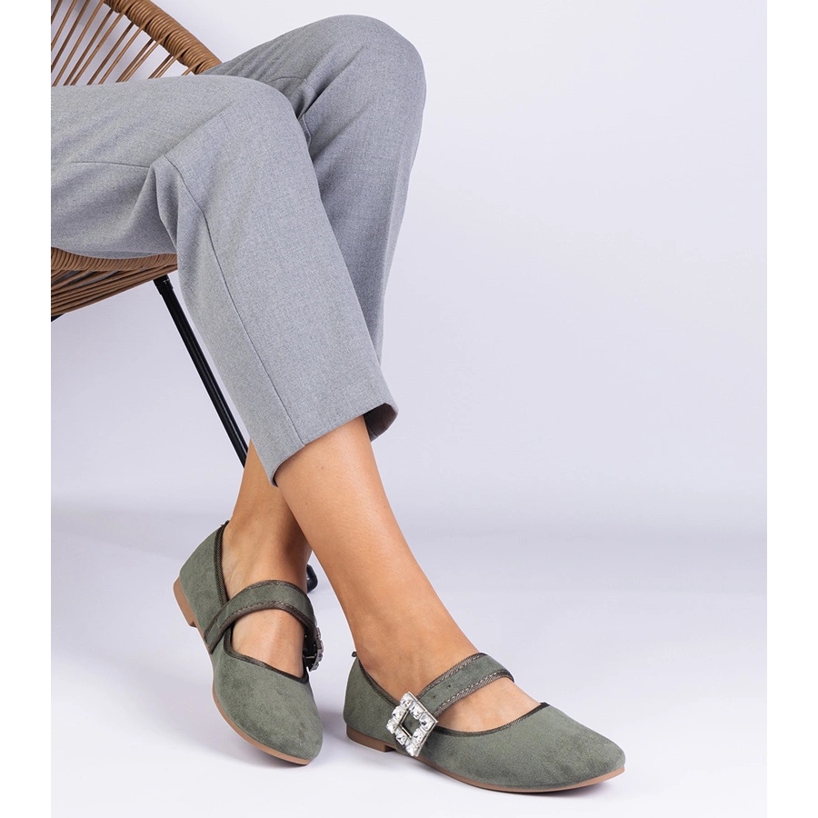 Inna marka Balerine verzi decorate cu o cataramă cu cristale verde