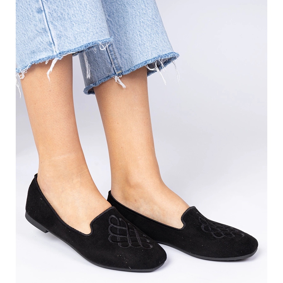 Inna marka Balerinele Ekozamszowe ale femeilor negre cu broderie negru