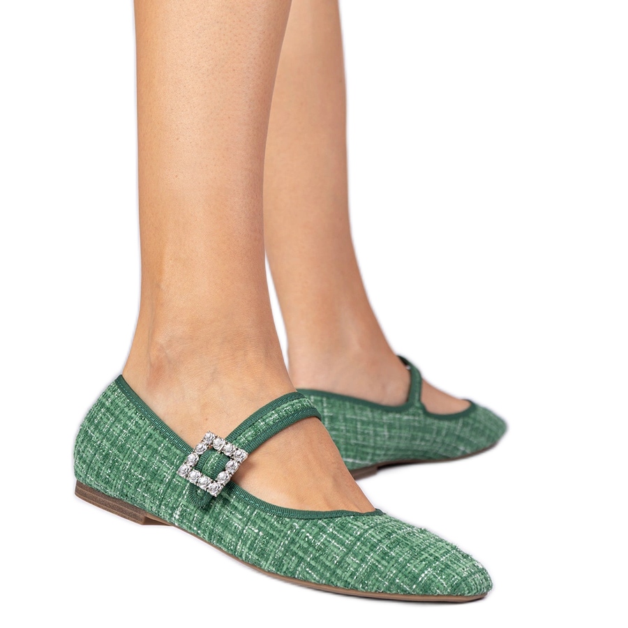 Detalii: Balerinele pentru femei verzi cu cataramă și cristale verde