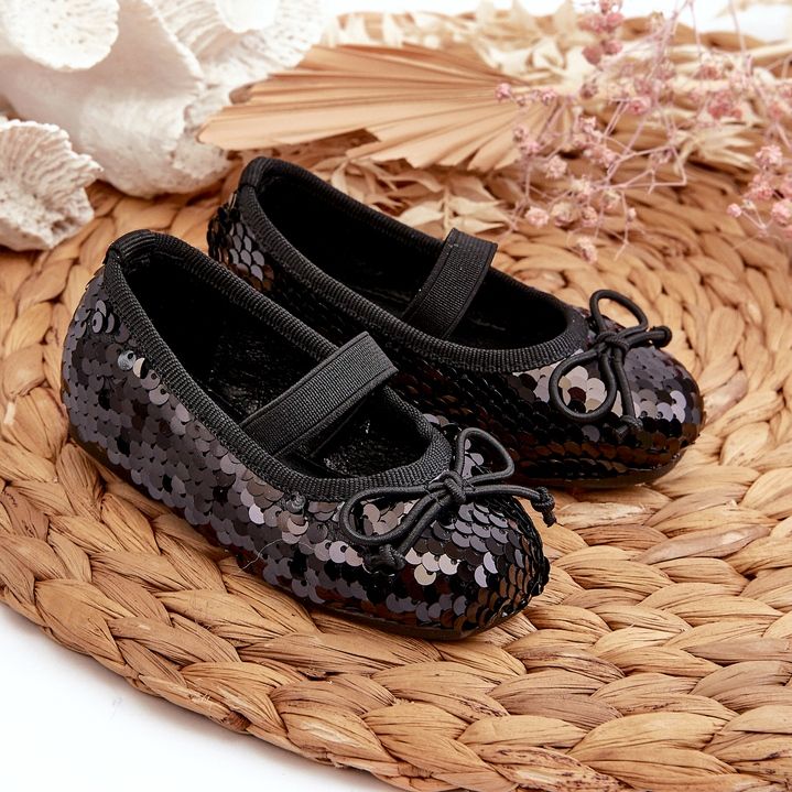 Detalii: Balerinele pentru fete decorate cu paiete și un arc negru