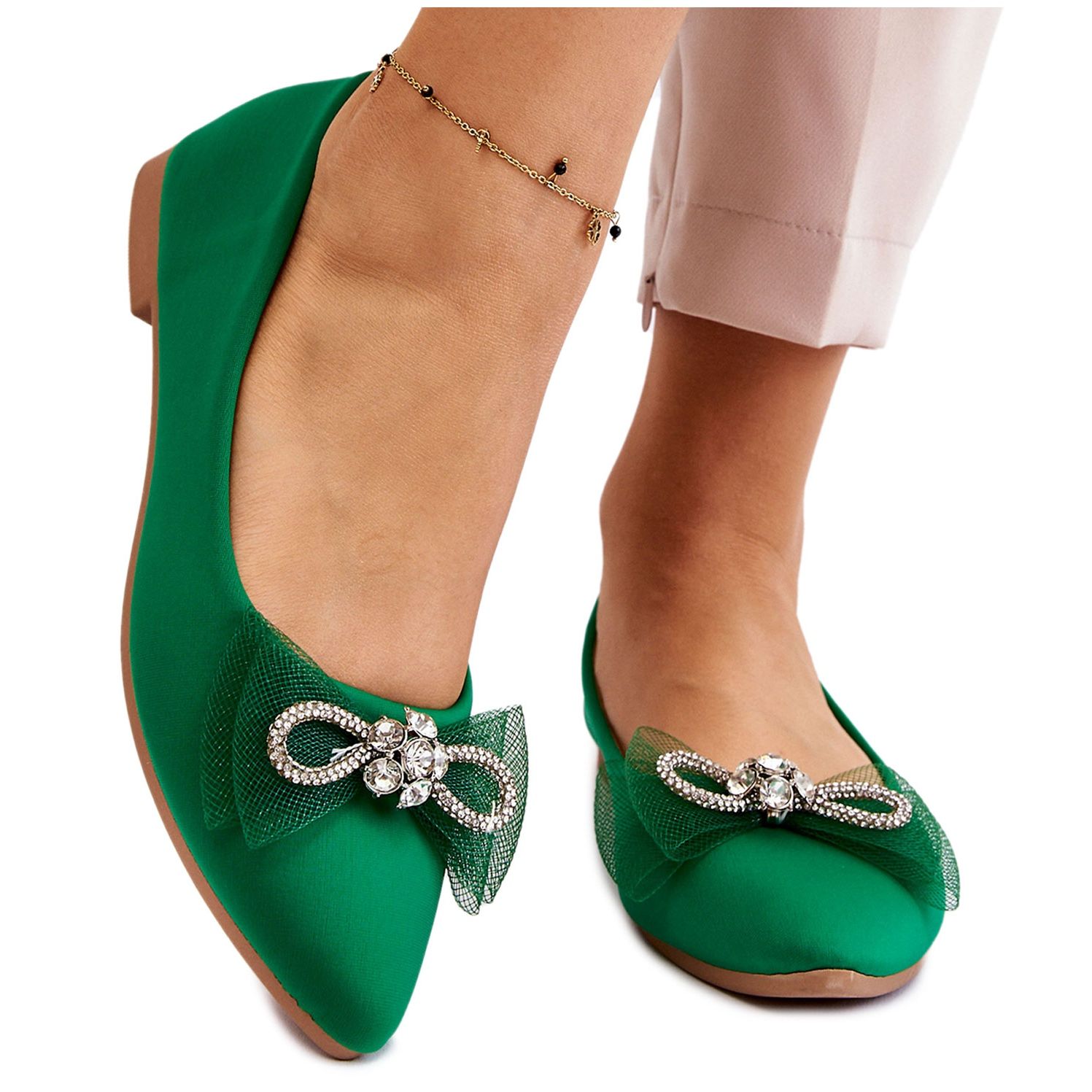Detalii: PS1 Balerini ascuțiți de damă cu fundă decorativă verde luminoasă
