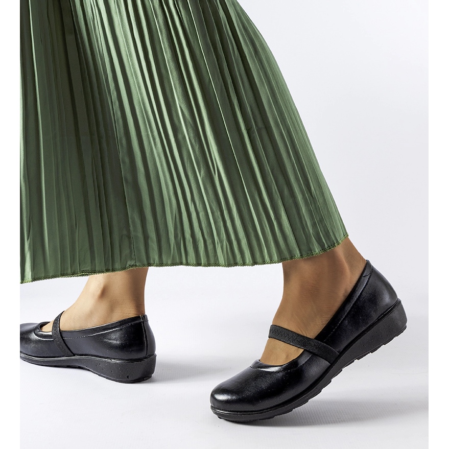 Balerine negre cu încălțăminte de vară MACHIKO-2 și încălțăminte de vară confortabilă. Tăierea neagră minimalistă, atemporală, va funcționa atât pentru stilizări cotidiene, casual, cât și pentru seturi mai elegante. Tăierea cu alunecare cu o bandă elastică flexibilă asigură o anumită amenajare și rapid, iar nasul rotund adaugă feminitate subtilă.
