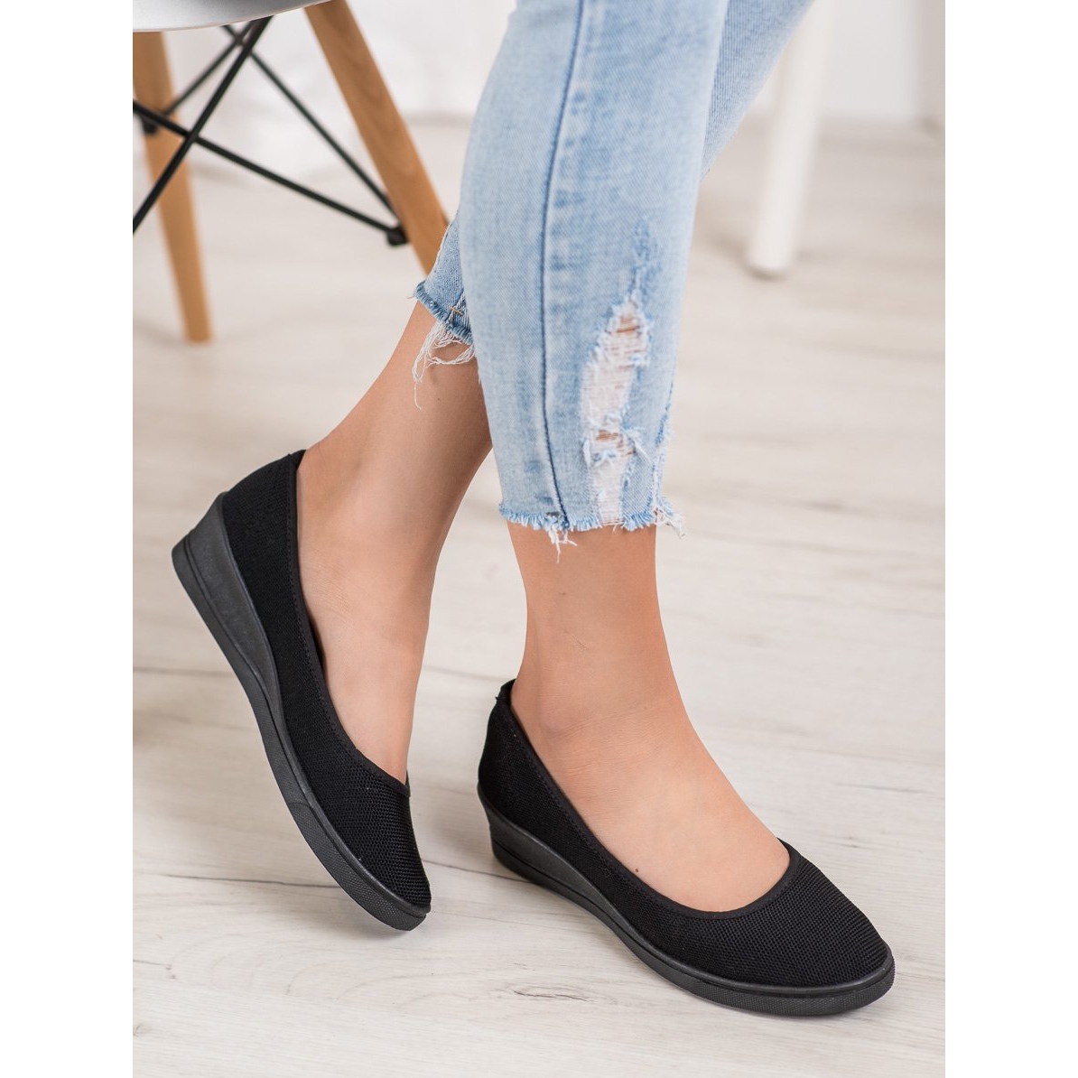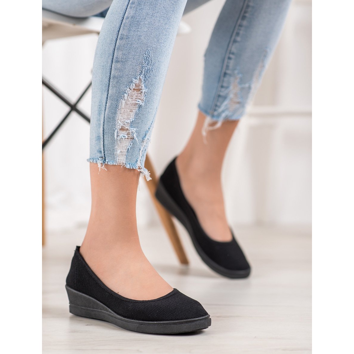 Balerinii casual negri SHELOVET sunt alegerea perfectă pentru femeile moderne care apreciază confortul și stilul în fiecare zi. Acesti balerini eleganti, realizati in intregime din materiale textile de inalta calitate, imbina un caracter sportiv cu un design casual, ceea ce ii face o piesa vestimentara versatila.