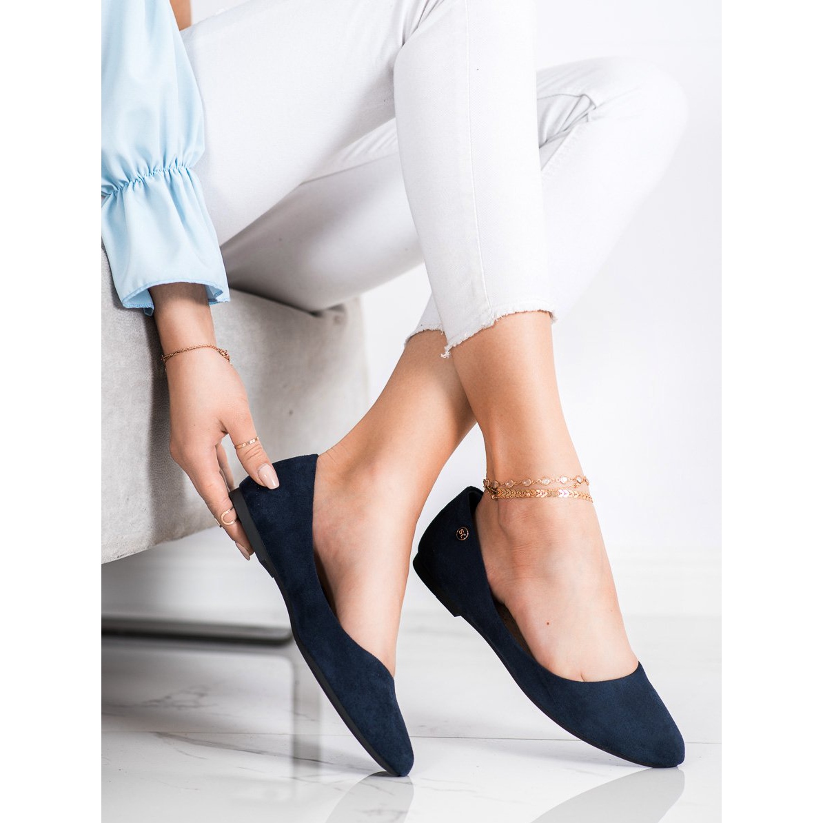 Descoperă noii balerini clasici Sergio Leone într-o nuanță elegantă de bleumarin! Acești pantofi unici sunt combinația perfectă de stil și confort, perfectă atât pentru muncă, cât și pentru viața de zi cu zi. Confectionati din piele intoarsa ecologica, balerinii emana subtilitate si eleganta, iar varful lor rotund si tocul incorporat asigura nu numai aspectul estetic, ci si confortul la purtare.