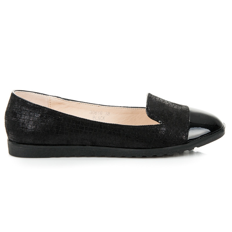 Descoperiți eleganța și confortul cu balerinii Nio Nio cu vârf lacuit în negru clasic. Acești pantofi de damă combină designul modern cu funcționalitatea, ceea ce îi face alegerea perfectă pentru orice ocazie - de la plimbări de zi cu zi până la evenimente mai formale.