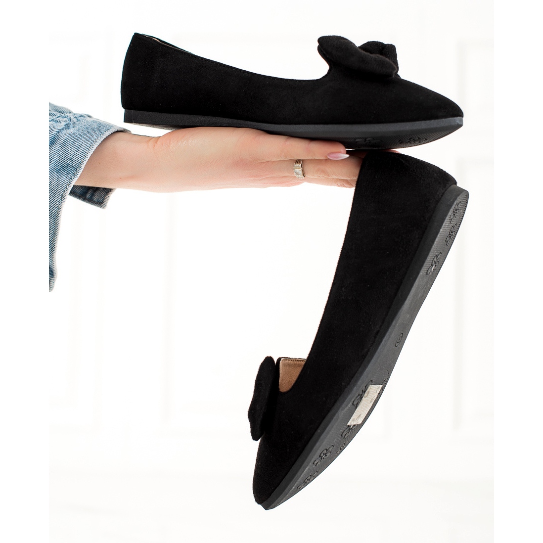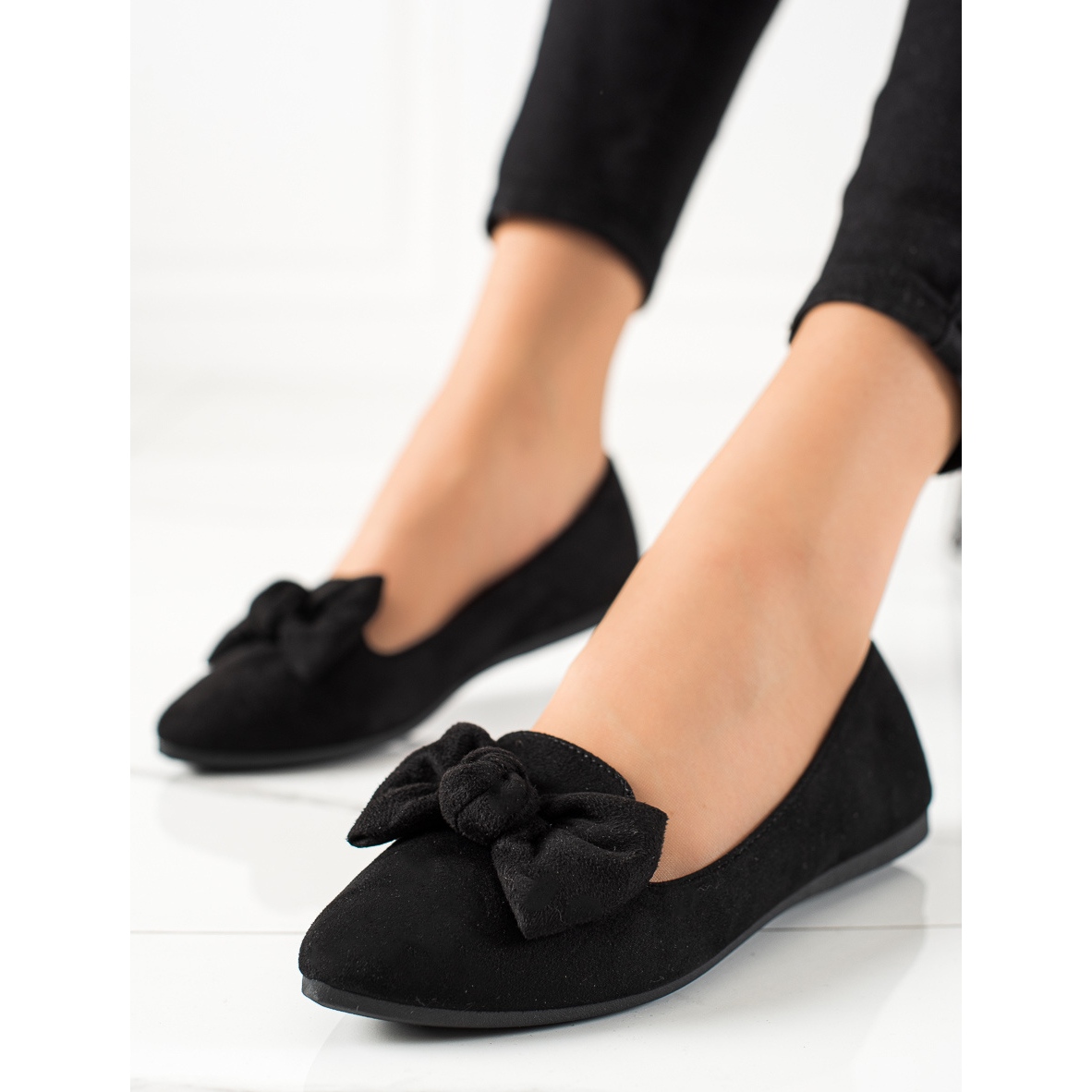 Va prezentam balerinii W. Potocki cu fundita – alegerea perfecta pentru femeile care apreciaza eleganta si confort. Acești balerini clasici negri vor fi o completare perfectă pentru garderoba ta de primăvară și vară. Confectionate din imitatie de piele intoarsa de inalta calitate, arata extrem de stilat, iar datorita tocului moale, incorporat, asigura confortul purtat pe tot parcursul zilei.
