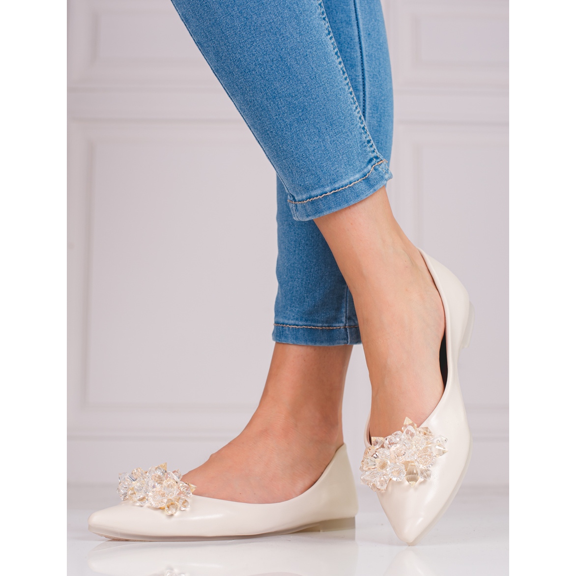 Balerinii de damă cu cristale de la SHELOVET sunt o alegere excelentă pentru femeile care apreciază eleganța și confortul în utilizarea de zi cu zi. În varianta bej, acești pantofi frumoși se potrivesc perfect în tendințele de primăvară-vară, combinând stilul casual cu un pic de clasic și eleganță.