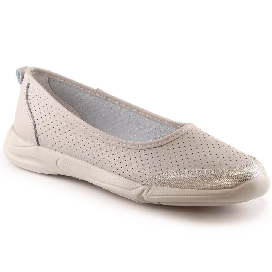 Jezzi Balerini de damă din piele bej ajurat Jezzi 3621