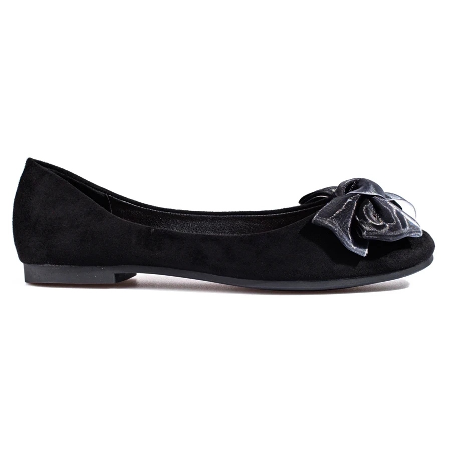 Shelovet - Balerine pentru femei din piele de căprioară cu un arc, negru