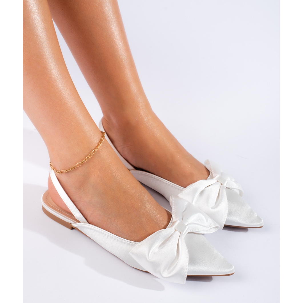 SHELOVET Balerini de damă din satin cu fundă în Shelovet alb