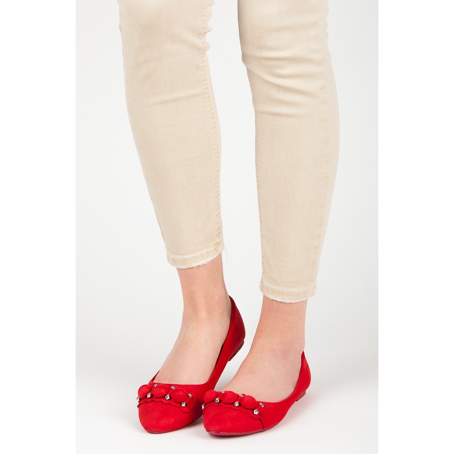 Detalii: Seastar Balerini de piele intoarsa cu decolteu in V roșu