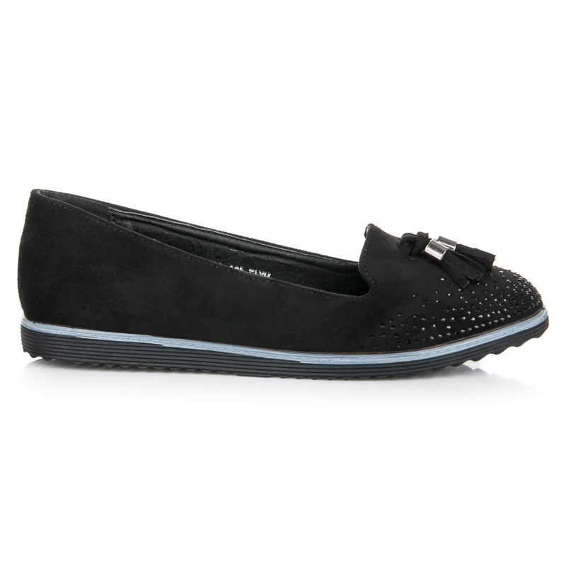 Faceți cunoștință cu balerinii negri Muto Suede cu franjuri, care sunt combinația perfectă de eleganță și confort. Acești pantofi stilați, din piele ecologică de înaltă calitate, sunt o alegere perfectă pentru orice ocazie - atât pentru coafarea de zi cu zi, cât și pentru ținute mai formale.