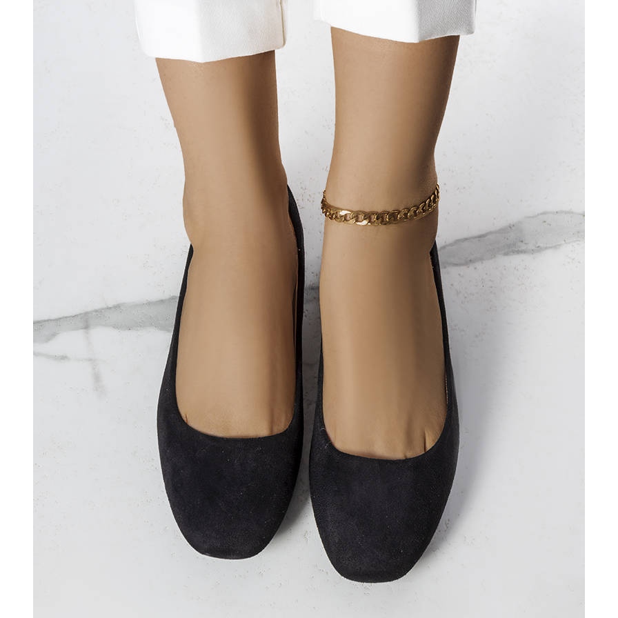 Balerinii negri din piele de căprioară ecologică Jules sunt o alegere perfectă pentru femeile care doresc să îmbine stilul cu confortul. Varful lor patrat iese in evidenta fata de modelele clasice, conferind incaltamintei un caracter modern si elegant. Confecționați din piele ecologică de înaltă calitate, acești balerini oferă nu numai un aspect atractiv, ci și extrem de confortabil la purtare.