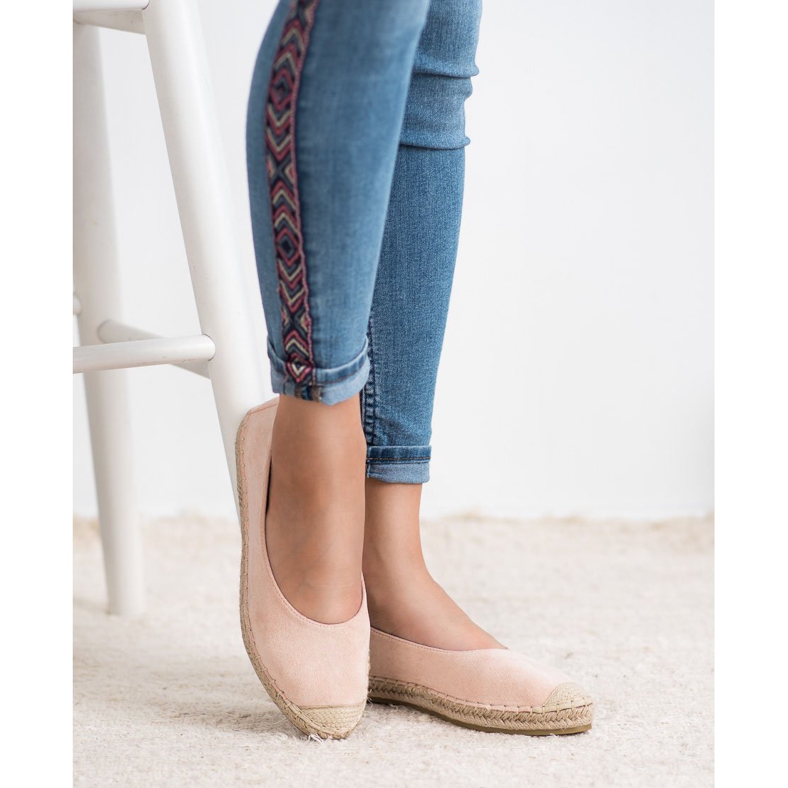 Vă prezentăm balerinii roz Marquiz, care îmbină lejeritatea, confortul și designul la modă. Fabricate din piele ecologică de înaltă calitate, care imite piele de căprioară, oferă un confort excelent la purtare. Degetul rotund și talpa lor realizate din împletituri de iută adaugă un caracter unic pantofilor, făcându-i perfecti pentru coafarea de zi cu zi.