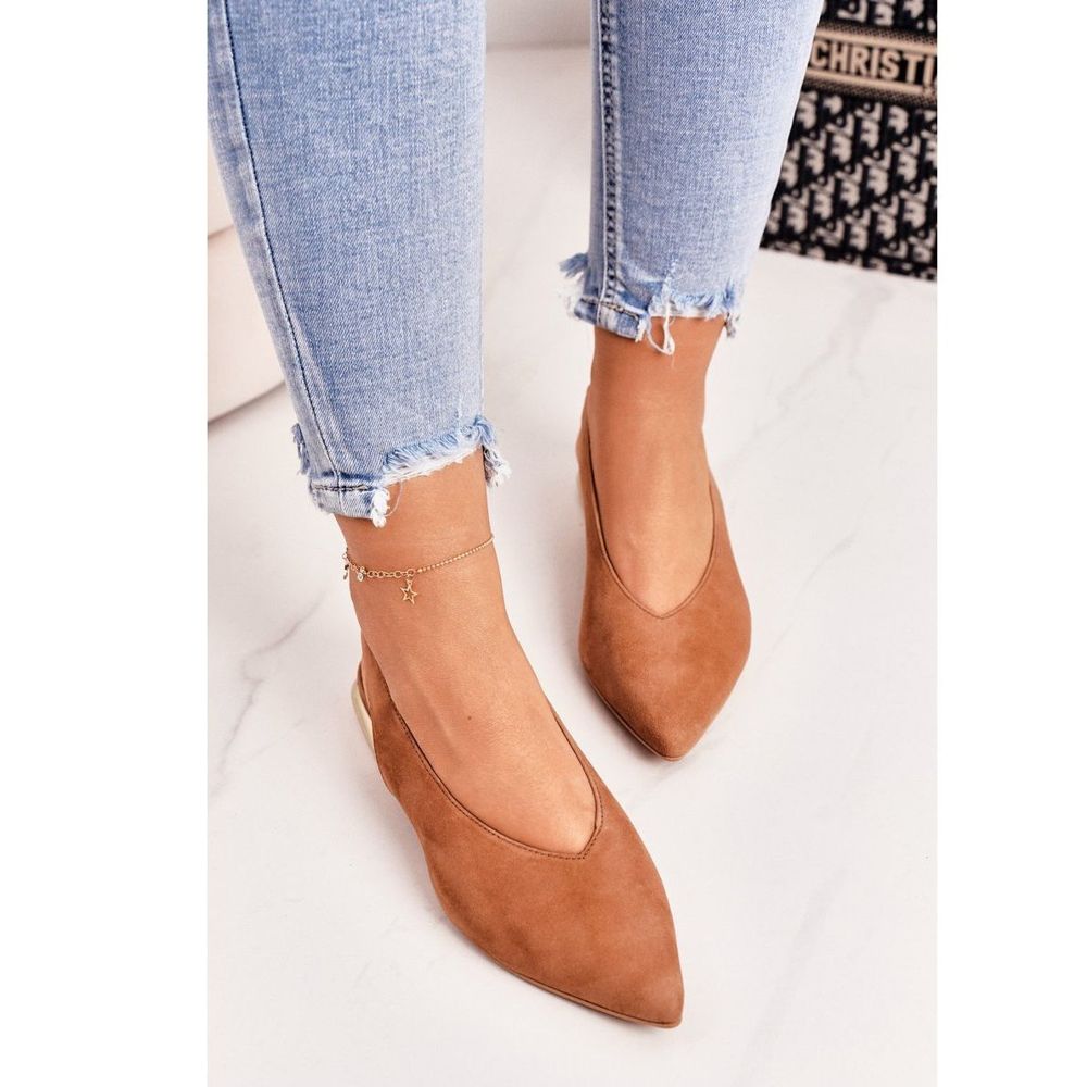 Laura Messi Balerini din piele de căprioară pe tocuri de aur Laura Messi 2127 Camel maro