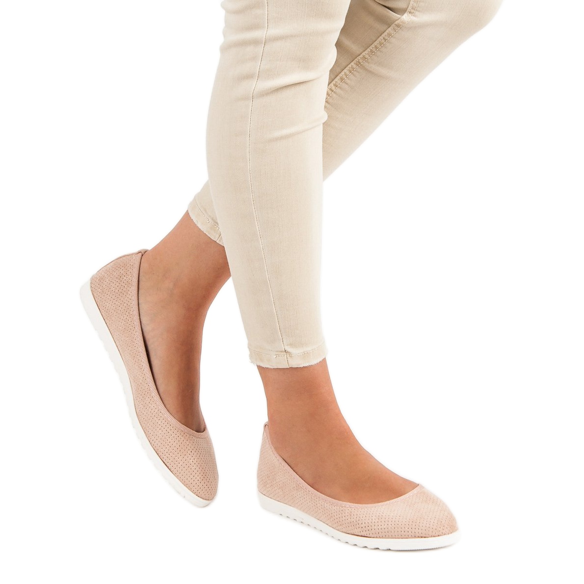 Sun Color Sun Color Balerini din piele intoarsa ajurata roz