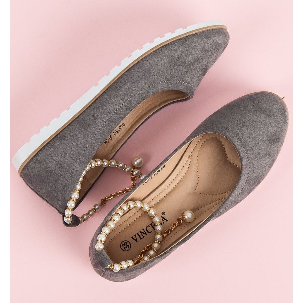Vinceza Balerini din piele intoarsa cu margele vinceza gri