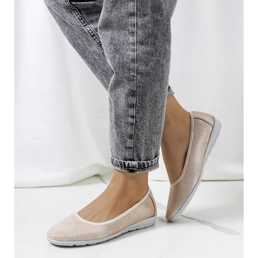 Ballerinas din piele bej elmas - o strălucire subtilă și confort în fiecare zi