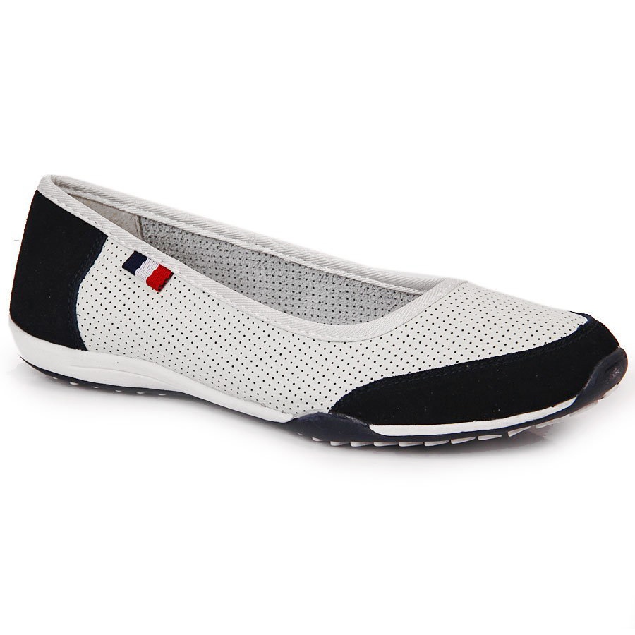 Ballerinele elegante, deschise, Filippo, sunt o propunere pentru femeile care apreciază confortul și de înaltă calitate. Partea superioară și căptușeala sunt confecționate din piele naturală, iar o inserție moale de piele ecologică din piele de căprioară oferă o senzație plăcută sub picior. Modelul într -un stil supus, alb și bleumarin este excelent pentru stilizările de zi cu zi, de primăvară și de vară.