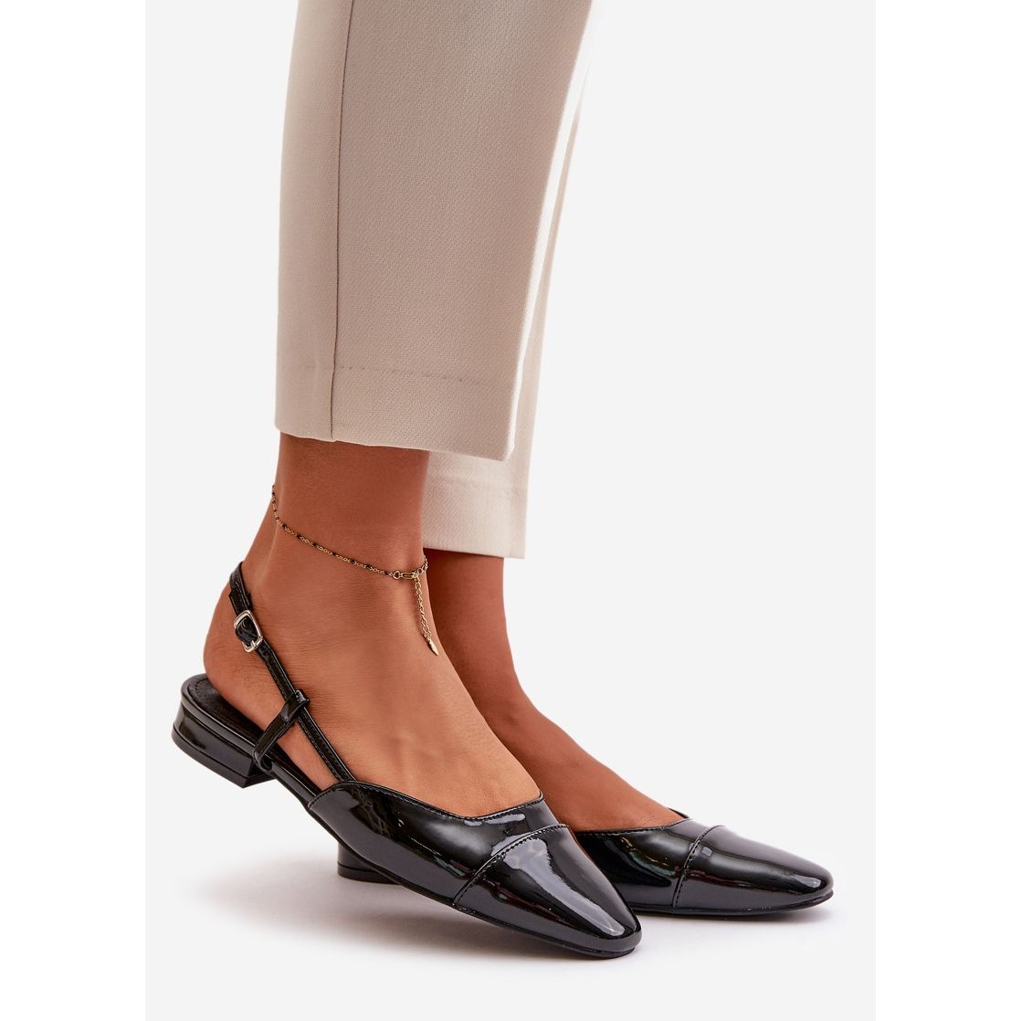 Inna marka Balerini Kairael cu toc scăzut, negru patentat, cu toc deschis