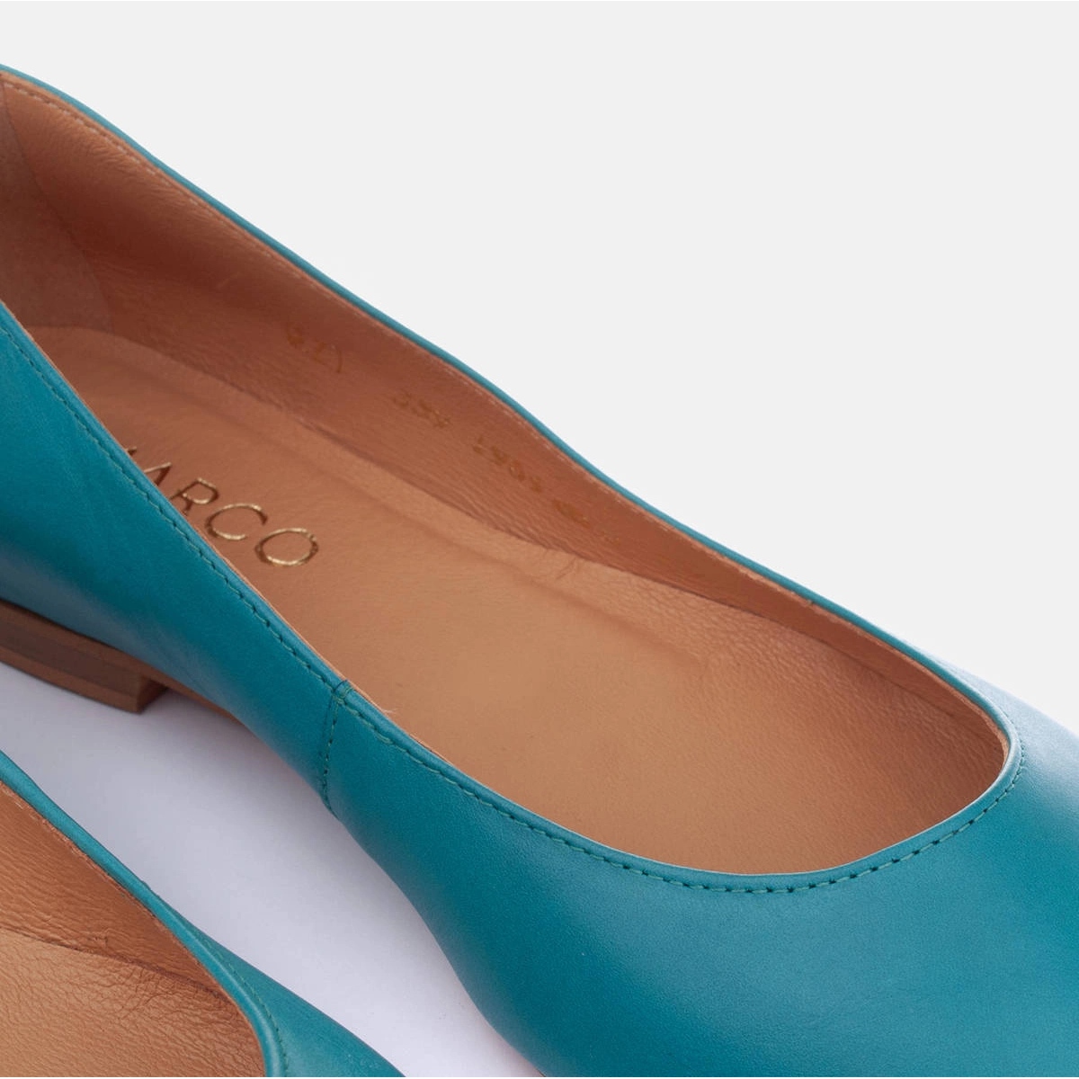 Produsul descris aici sunt balerini albastri de la Marco Shoes. Acesta este un model clasic cu un decolteu adâncit, realizat din piele de capră boabe de calitate superioară. Acești balerini au un deget ușor alungit, care subțiază piciorul. Pielea naturala din care sunt confectionate este folosita atat pe partea superioara cat si pe interiorul pantofului, ceea ce asigura confortul de utilizare.