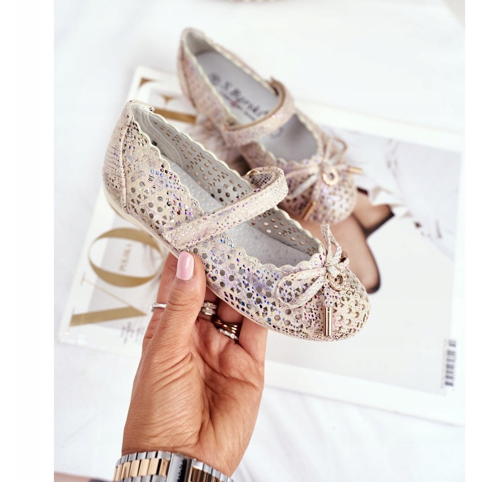 Detalii: S.Barski Ballerine ajurate cu Velcro Barski Remtro maro multicolor