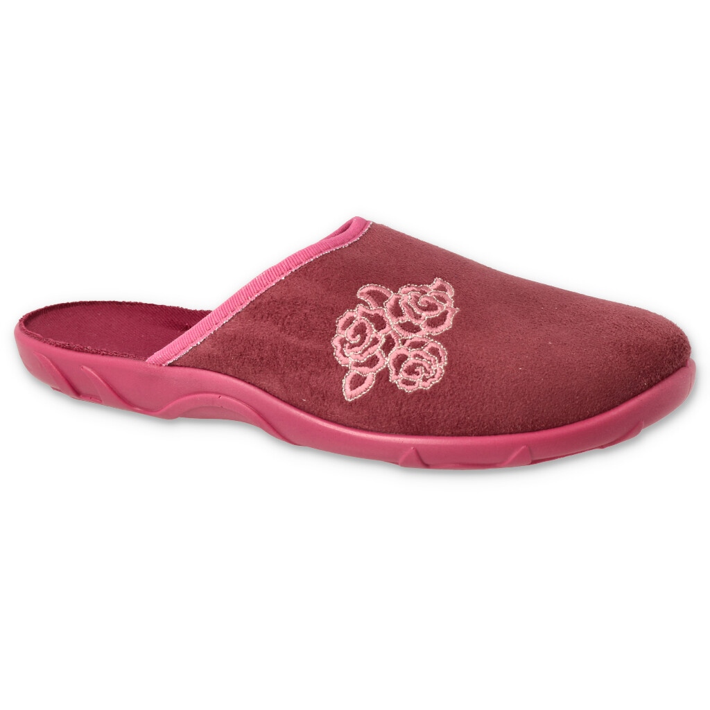 Papuci colorate Befado 235d158 sunt o combinație de lejeritate plăcută și confort de zi cu zi. Un model roz cu accente roșii va funcționa pentru femei de toate vârstele - un design delicat, țesătură moale și talpă confortabilă, anatomică, profilată, va face momentele petrecute acasă mai plăcute.
