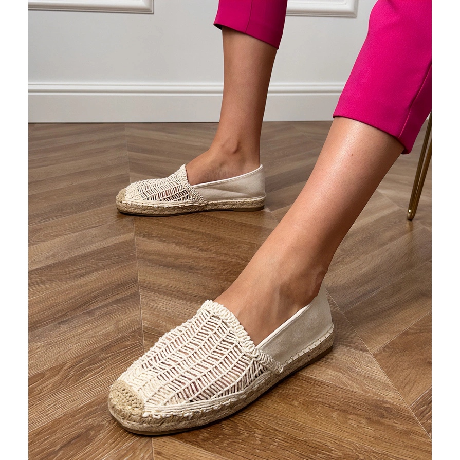 Detalii: Beige Openwork Espadrilles pe platformă bej
