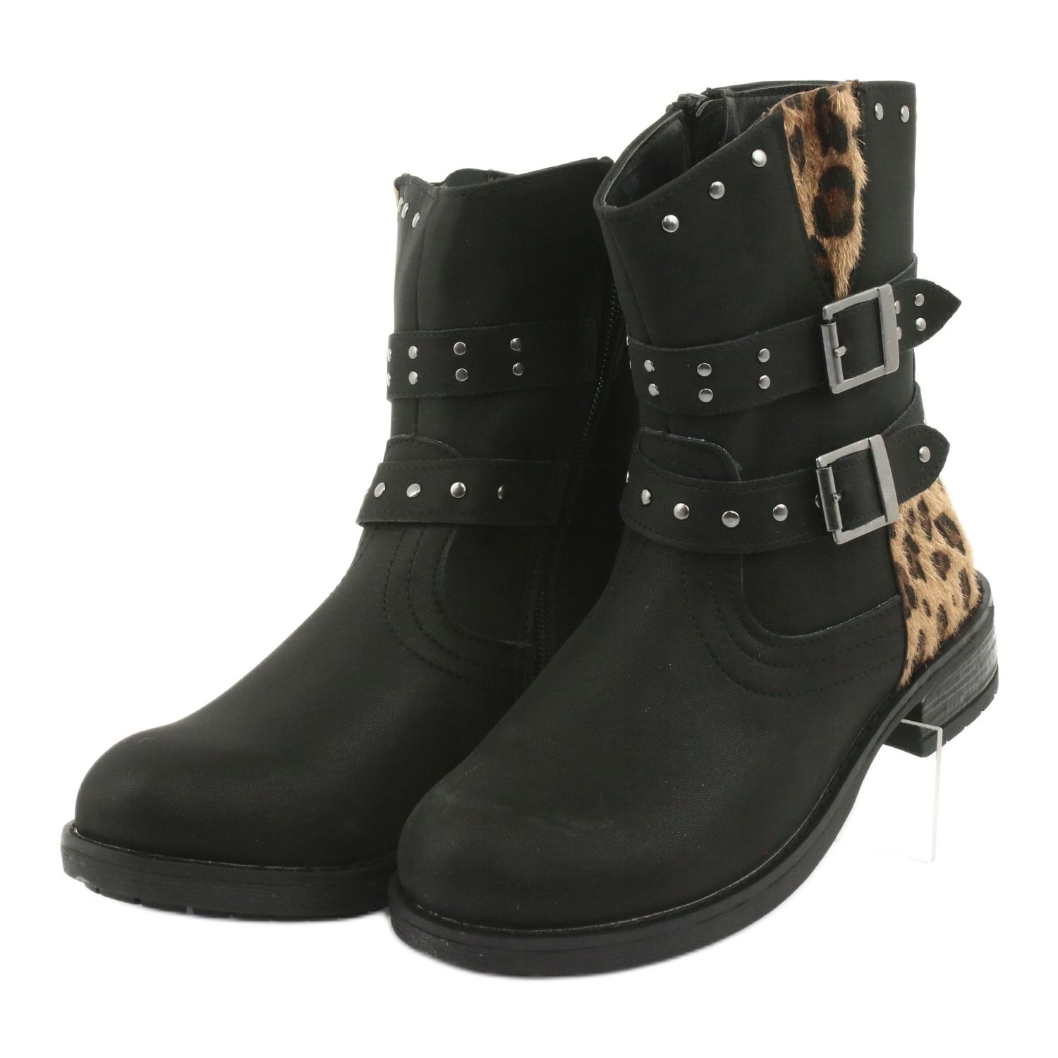 Cizmele leopard cu jet negru American Club sunt o alegere perfectă pentru micii iubitori de modă. Fabricate din piele ecologică de înaltă calitate, aceste botine elegante combină stilul cu funcționalitatea. Partea superioară a acestora, de aproximativ 16,5 cm lungime, cu un imprimeu subtil de leopard, atrage atenția, iar tocul de 3 cm adaugă confort în timpul activităților de zi cu zi.