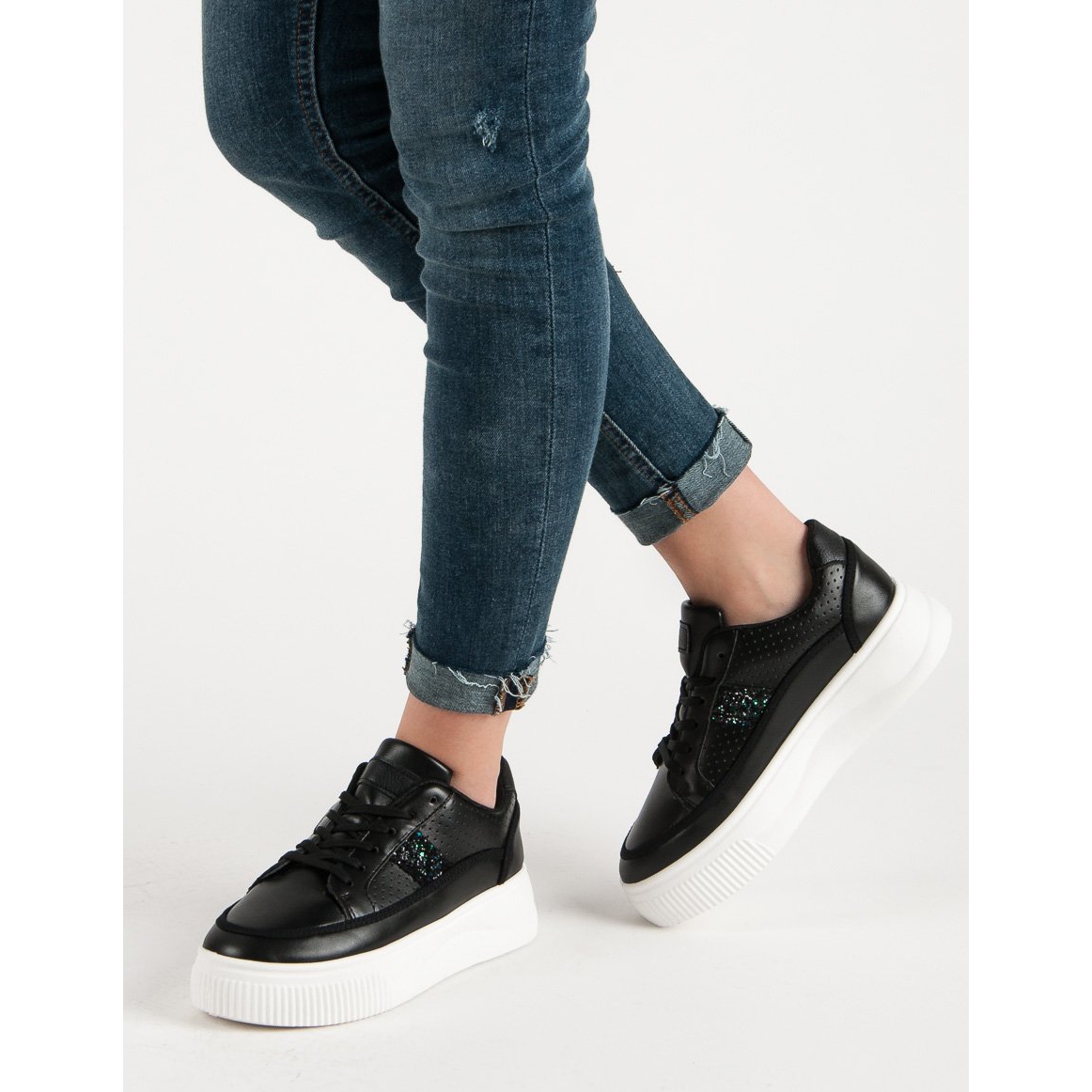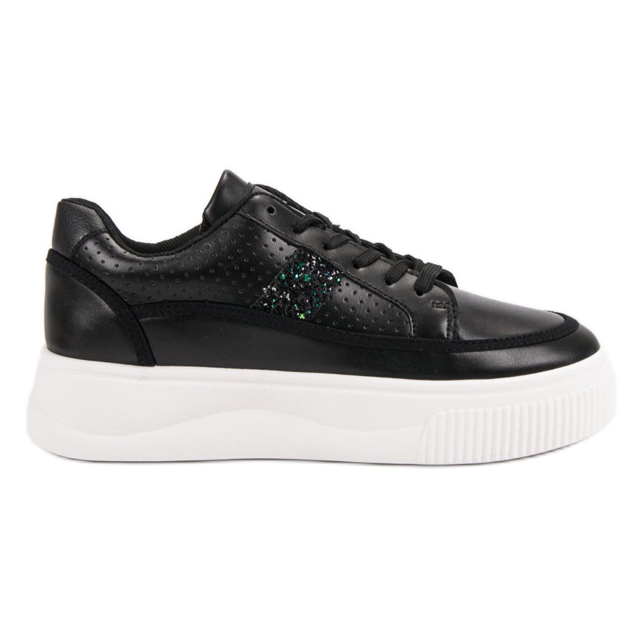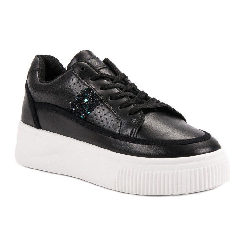 Black Creepers With Glitter sunt alegerea perfectă pentru femeile care caută o combinație de stil și confort. Acești pantofi la modă cu o platformă de 4 centimetri nu numai că subțiază optic silueta, dar arată grozav și pe picior. Datorită călcâiului moale încorporat și tălpii confortabile, sintetice, cu benzi de rulare, acestea oferă un sprijin excelent în timpul utilizării de zi cu zi.