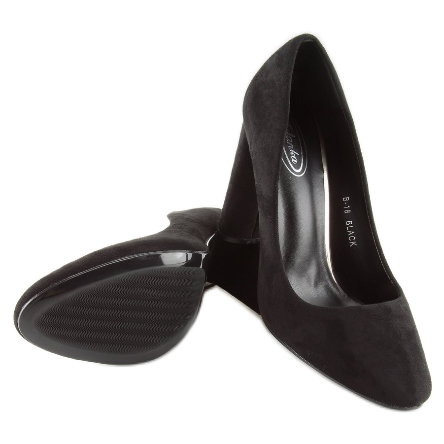 Un avantaj suplimentar al pompelor B-18 este designul lor minimalist. Fara model, intr-o culoare neagra eleganta, se asorteaza perfect cu diverse tinute. Degetul migdalat și închiderea slip-on adaugă eleganță și le fac extrem de ușor de pus.