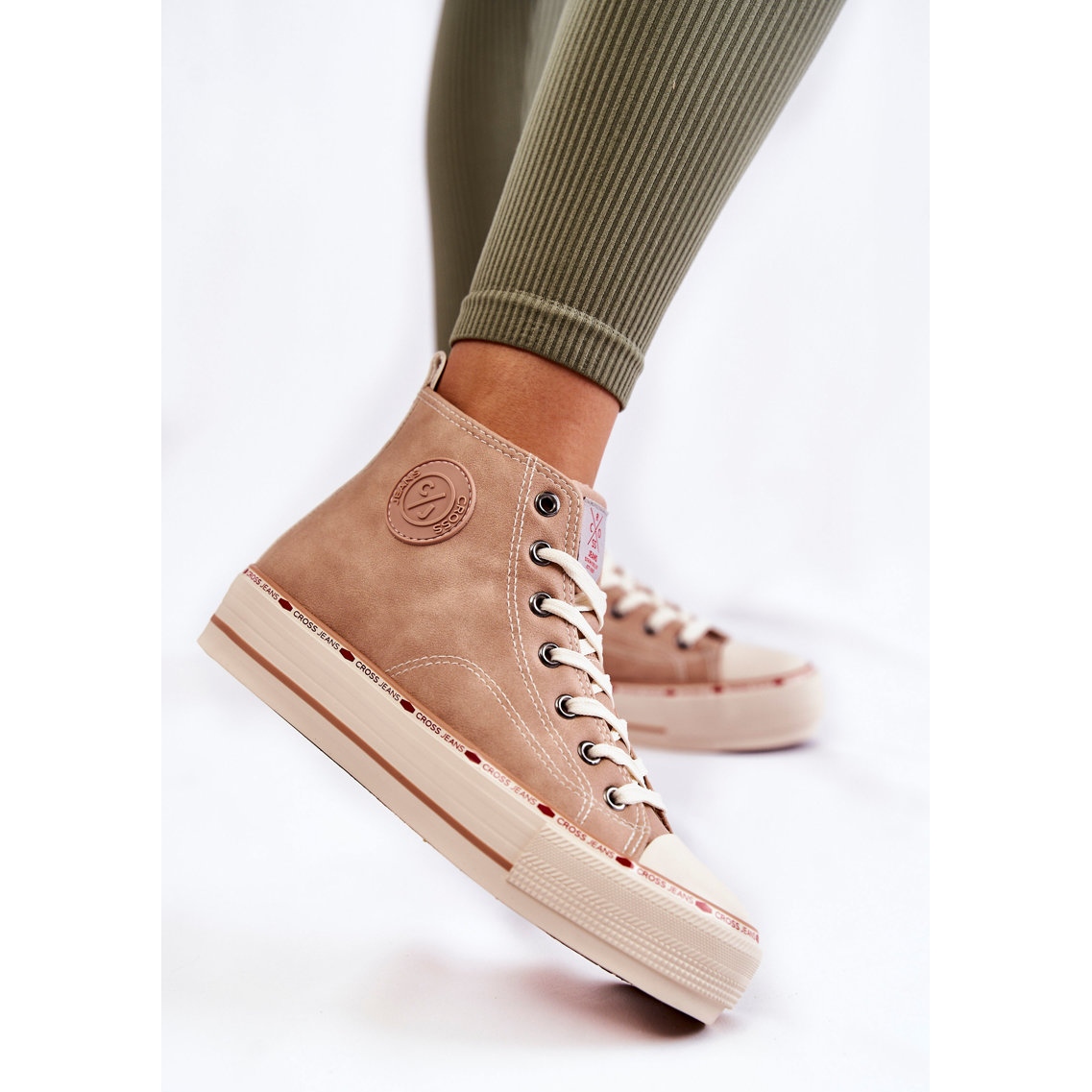 Descoperiți pantofii sport unici Cross Jeans KK2R4045C pentru femei, într-o culoare bej la modă, care sunt o alegere perfectă pentru zilele mai reci. Acești pantofi sport stilați, ajungând deasupra gleznelor, îmbină confortul și eleganța. Legatura clasica cu un logo decorativ pe partea superioara si la limba le confera un caracter unic.