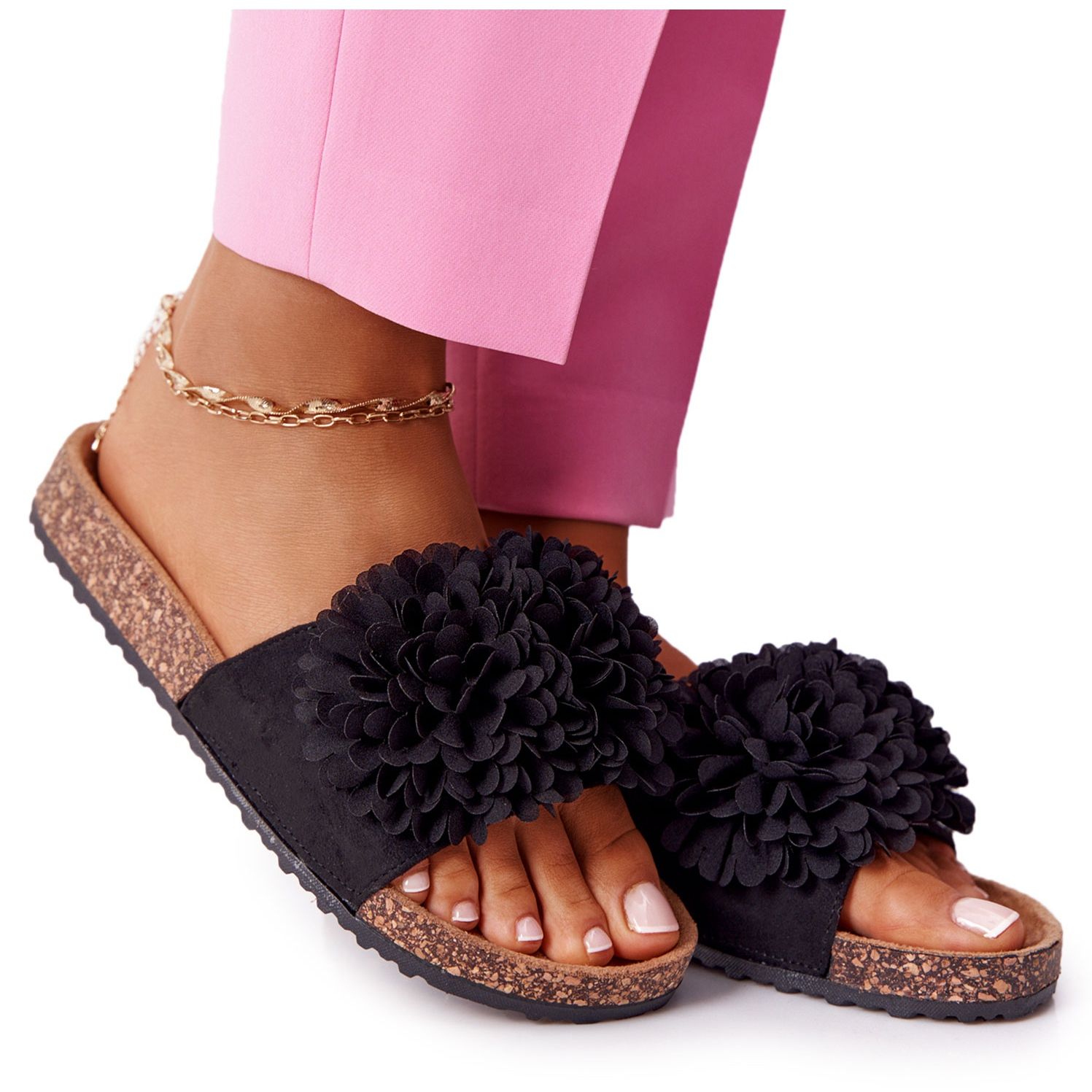 PE1 flip -flops pe o talpă de plută - Flowerbomb (negru)