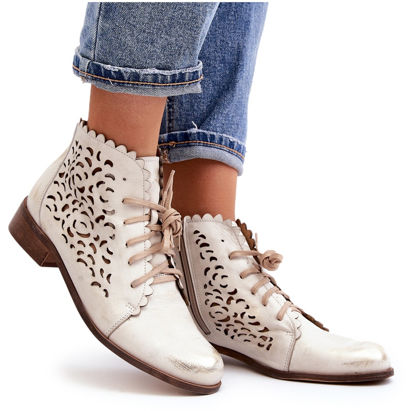 Zazoo Botine ajurate pentru femei Zazoo 2871, aurii, periate de aur